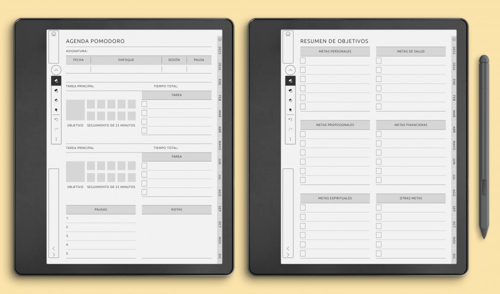 Compatible with Amazon Kindle Scribe tablets. You can customize the planner according to your preferences and download it in PDF format. Enjoy a high-quality hyperlinked page system with clickable tabs and buttons, start managing your affairs efficiently, and let everything work out.